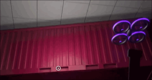 4、冲出大门就是刺激的追逐战,一直往前跑,路上捡到紫色无人机可以把上方的集装箱放下来拖延猎人蒂姆的脚步;