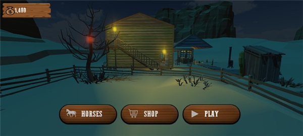 1、下载进入西部牛仔模拟器游戏,点击"PLAY"开始游戏;