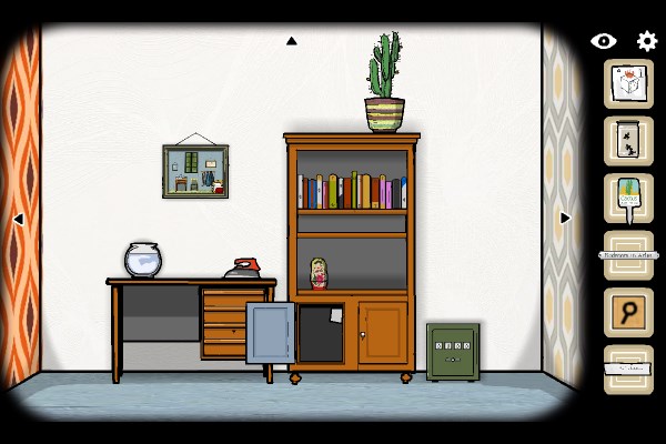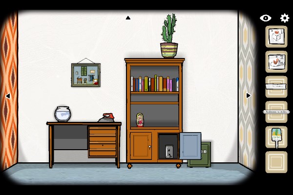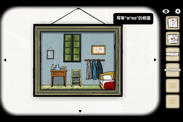 6、把书架下的套娃打开后,将物品按每个套娃身上的图案一一放入。最后拿到钥匙。