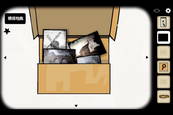 16、打开文件。根据纸片的提示,用雪茄烫在画像相应的地方上(按顺序分别是:黑方块上方、左手上、屋子和左眼)先记住,以后有用。