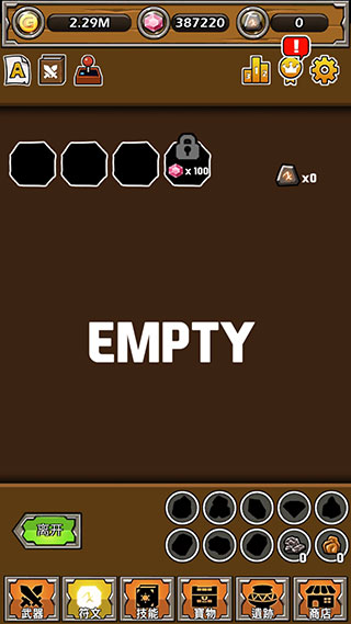打造最强名剑游戏中一共分为武器、符文、技能、宝物、遗迹、商店这六大玩法,下面就让我们一起来看看吧!