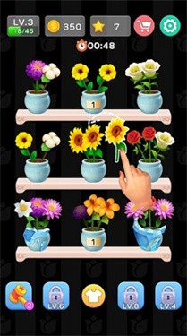 插花消消乐是一款令人愉悦放松的休闲游戏。游戏的操作简单易上手,可以帮助玩家放松心情、打发时间。多样的关卡和挑战模式给玩家带来丰富的游戏体验,不会让人感到枯燥。配以清新可爱的画面和欢快动听的音乐,增添了游戏的趣味性。