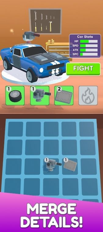 升级汽车并战斗是一款汽车题材的驾驶战斗游戏,加入了融合提升的技巧玩法,