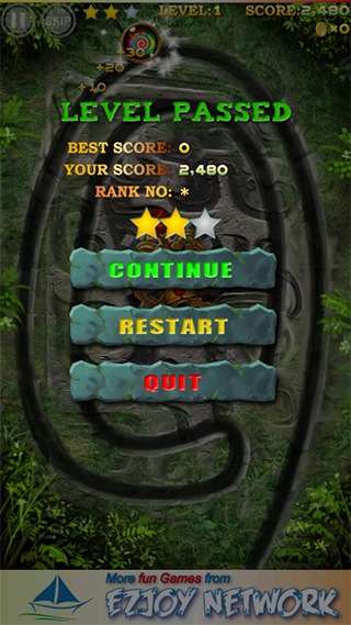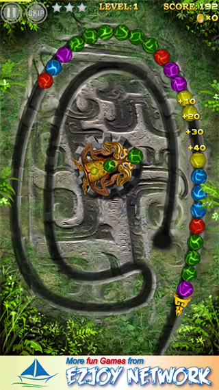 不要小看偶尔出现的金币哦,每个可是价值500分,因此要在青蛙祖玛中做到快速通过,我们可以多打金币,就可以快速完成分数要求了。