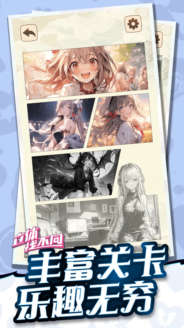 立体找不同是一款经典的找不同游戏,玩家需要在两张立体图片中找出差异之处。游戏有丰富的关卡和难度,能够锻炼玩家的观察力和反应能力。快来挑战你的眼力和大脑吧!对这款游戏感兴趣的玩家们快来下载吧。