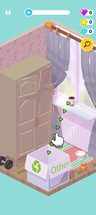 1、进入家居人生官方版,滑动将旧物品装进打包盒里。