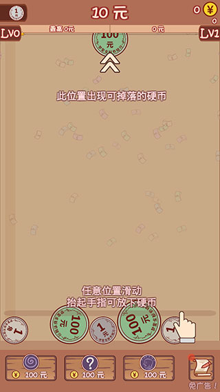 1、这款游戏的玩法跟合成大西瓜类似,正上方会出现可掉落的硬币,任意位置滑动抬起手指可放下硬币。