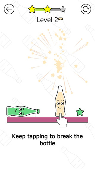 游戏操作:通过轻触屏幕和倾斜手机,巧妙地操作啤酒瓶,达到倒掉啤酒的目标。