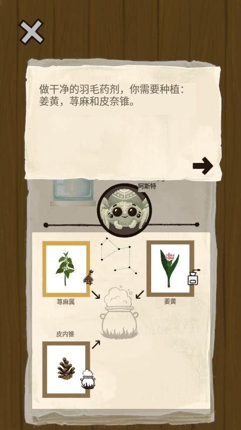 3、你的目标是成为一名药剂师,在商店购买做羽毛药剂的材料姜黄、荨麻属以及内皮锥。