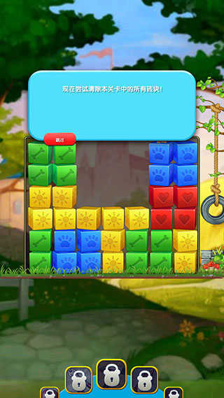 2、匹配两个或更多同色砖块来移除障碍,从邪恶的宠物大盗手中解救宠物。