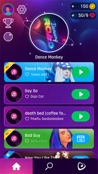 美歌大路音乐球球官方版是一款非常能够放松心情的音乐闯关游戏。简单的游戏操作,带你领略不一样的音乐游戏,在这里玩家需要操控一个小球在不断变换的赛道上前行,收集其他的物质,玩家需要与小球自身颜色相同的球球中通过,收集的小球越多,游戏节奏就会越快,避免撞击不同颜色的小球,而撞击相同的球则会得分,该游戏中的音乐歌曲非常的丰富,在这里,你可以操控自己的小球跟随动感的音乐一起忽上忽下的跳动与前行,带给玩家极大的挑战。