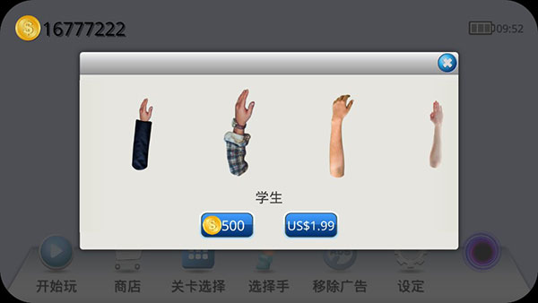 玩家可以选择不同皮肤的手进行使用,让闯关更加的有趣。