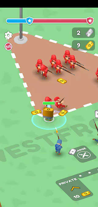 5、击败敌人后可获得金币,继续收集金币,以此招募更多的小兵!