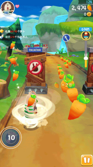 1、进入逃亡兔官方正版游戏后,通过虚拟按键滑动屏幕控制角色移动
