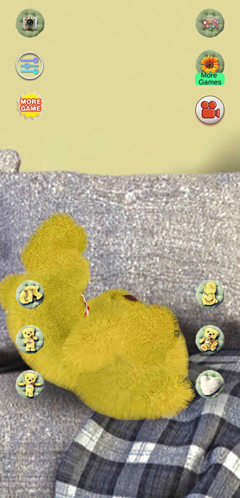 5、点击左上角的相机图标,可以随时抓拍毛绒熊的样子,以上就是会说话的毛绒熊游戏的玩法了。