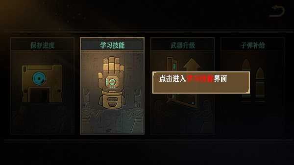 8、另外,点击右上角设置按钮,玩家可在这里保存进度,学习技能、武器升级和子弹补给等。