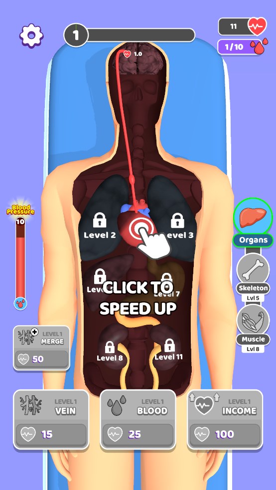 主题是模拟紧急过程,玩家需要引导和突破障碍,将所有血液输送到全身器官;