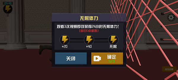 3、游戏内触碰激光是会受到伤害的,左上方区域可查看角色剩余血量,体力每十分钟恢复一点,离线也可后台自动恢复