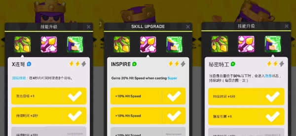 “女皇”一技能是连弩,4秒内同时攻击两个目标,升满级后可以持续7秒;二技能可以增加攻击速度,最高可提升50%;三技能为隐身技能,当生命值达到50%时,进入隐身,最高等级持续5.5秒。