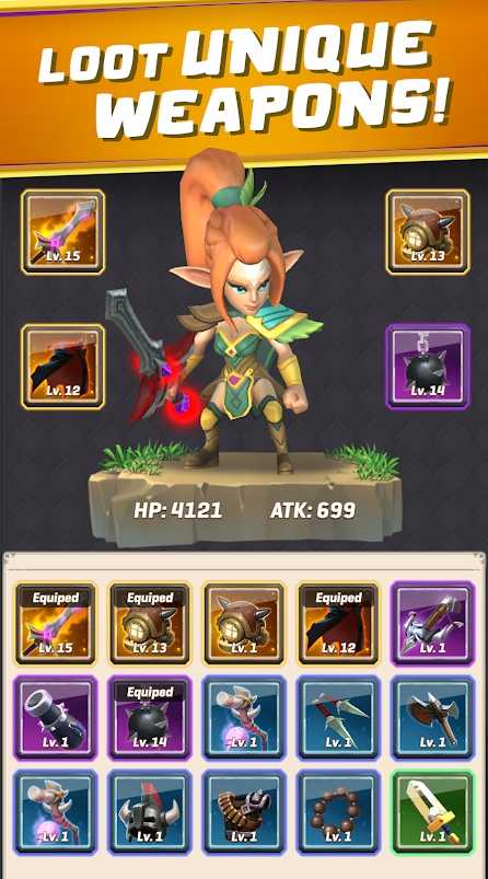 3、升级猎人的武器和技能,用更强大的能力反击,从稀有到传奇,再到史诗,装备非常的齐全;