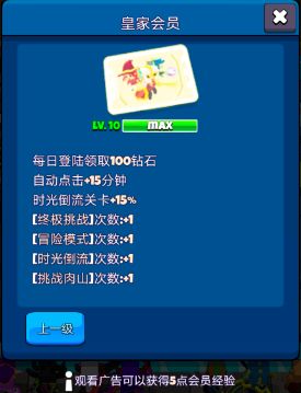 评测 vip经验是游戏除金币外第2不缺的资源。 20天之内就可以满V10 满V10之后每天只看很少数量的广告就行了,满满的游戏福利