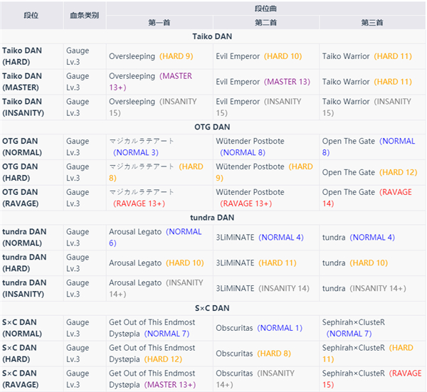 2023/03/05追加Taiko DAN和OTG DAN两组段位;2023/03/12追加tundra DAN段位;2023/03/19追加S×C DAN段位;2023/03/26追加Cuvism DAN段位。
