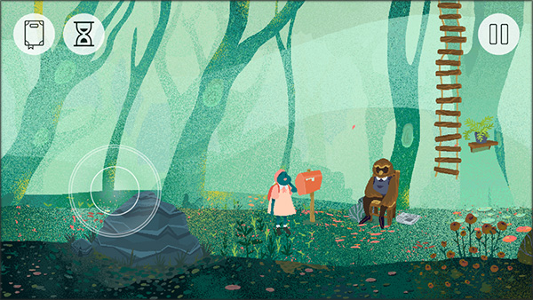 2、通过左边的轮盘进行控制人物移动,出现类似眼睛图标可以进行交互。