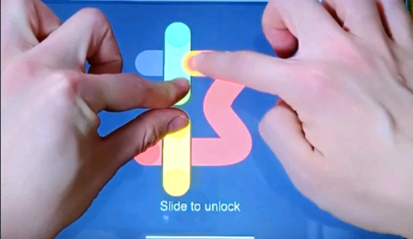 3、当你遇到下图挑战以后就是分水岭,结束它的挑战以后就来到了slide to unlock游戏真正的乐趣,需要多根手指一起闯关。