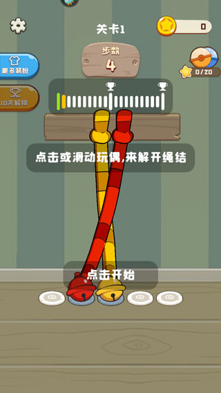 2、玩家需通关点击屏幕来解开绳结;