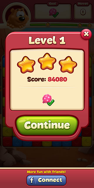 6、达成关卡目标后,剩余的步数会转化为最终评分。