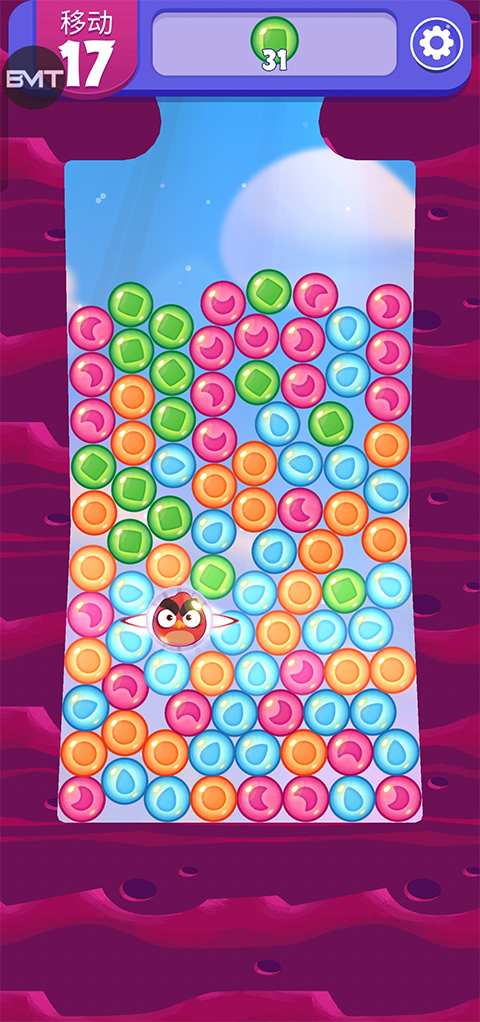 1、首先打开愤怒的小鸟梦幻爆破最新版,玩家可以点击相同的泡泡来消除它们;