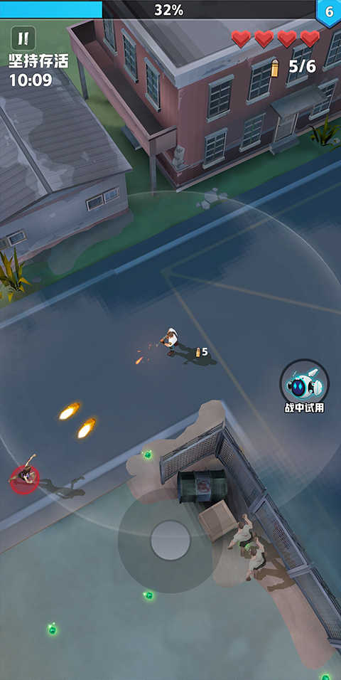 1、下载进入僵尸狂潮手游,首先我们通过滑动屏幕来控制角色移动;