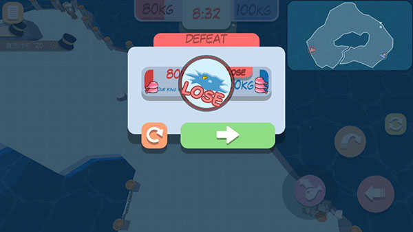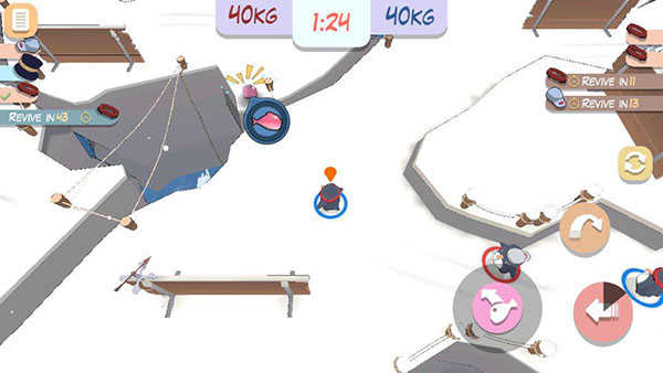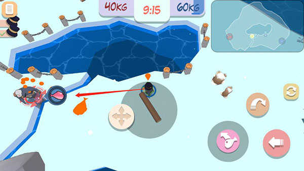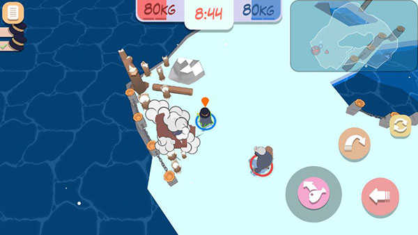 2、 类似于篮球玩法,企鹅需要争夺场中的鲑鱼送到敌方禁区并把对方国王喂胖