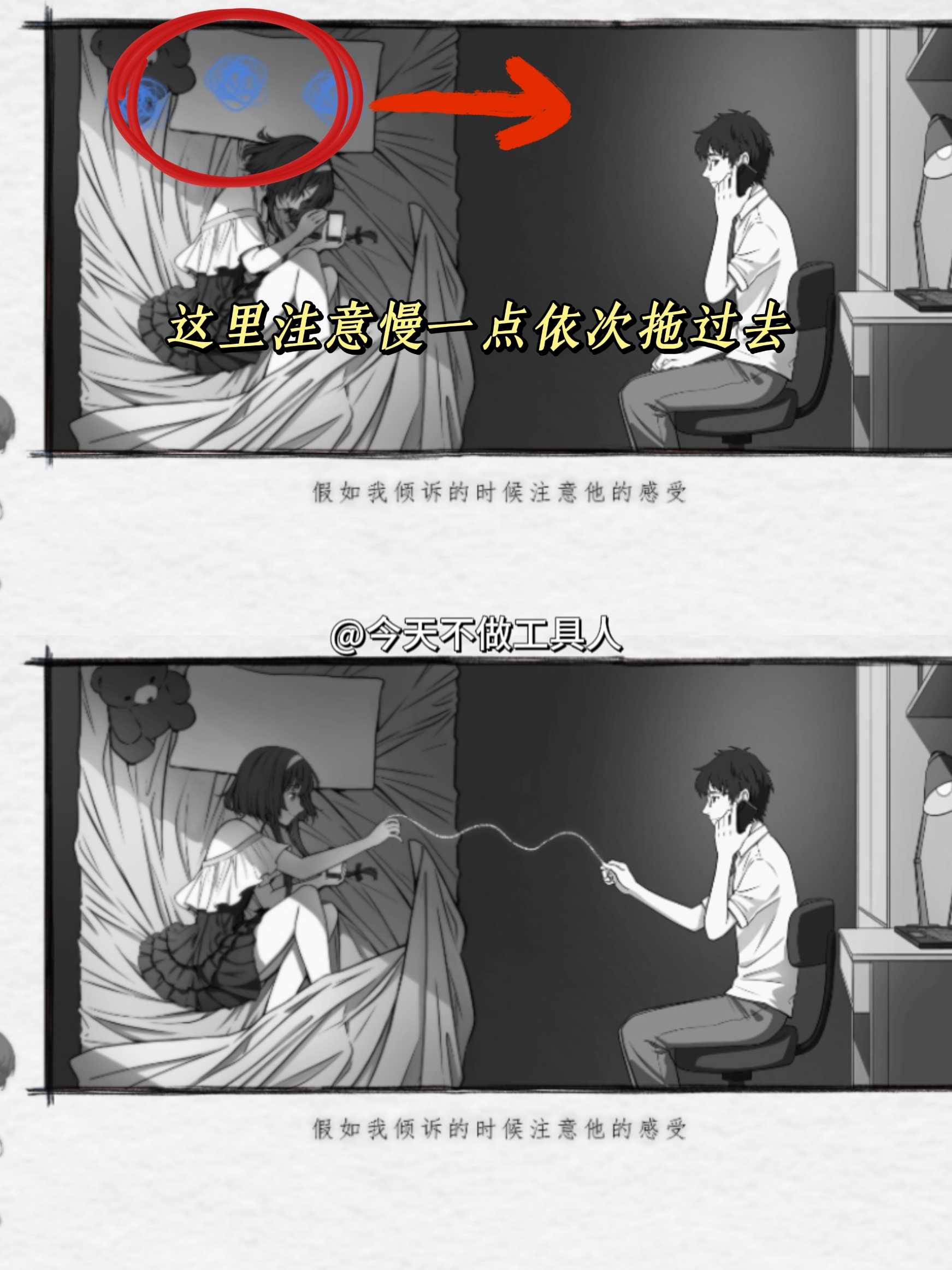 7. 倾诉:分别拖动蓝色语言团到男主那里,拖一个听男主的回复,听完回复再拖下一个