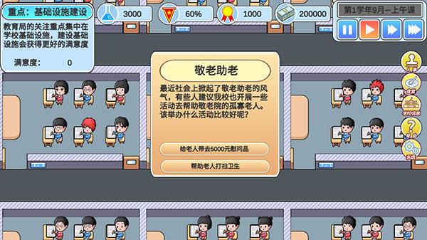 当一回校长游戏中,玩家不仅需要管理学校的日常运营,还需要制定长远的发展规划,以提升学校的教学质量,作为以高考为背景的游戏,玩家需要密切关注高考政策和动态,通过模拟高考、组织模拟考试和志愿填报指导等方式,帮助学生顺利应对高考挑战。