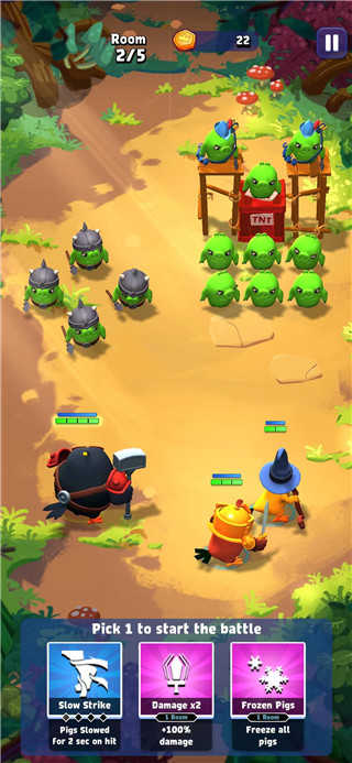 在实时战斗中战略性地重新定位您的羊群,以躲避猪的攻击,或放置您的鸟进行完美定时的特殊攻击。
