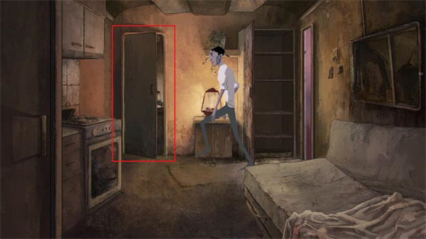 12、房子里只有一个叫masha的女人(好像是这个名字吧)。一开始让主人公离开房间,但是主人公靠近和她说了几句话后,气氛缓和下来。又是一阵谈话,结束后我们先点击脚下的香烟,准备拿起的时候被masha阻止了。