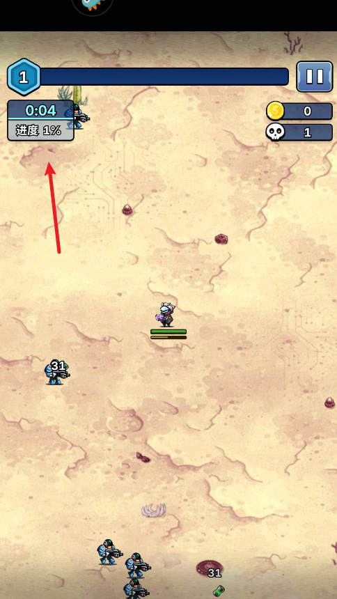 1、进入星海幸存者游戏通过触摸屏幕移动,角色会自动攻击。