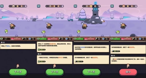 每个关卡最后一天会遇到boss战,战胜即可通关。当然,无论是否通关,关卡结束后会获得金币和号角奖励(后期可能会有更多的奖励内容),都是用于养成玩法的资源。