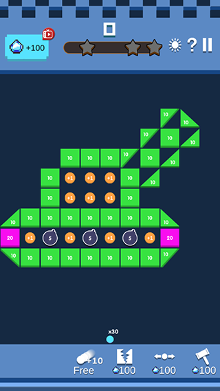 打开游戏界面进入的就是要展现你的弹球技巧,滑动屏幕,瞄准方向,发射弹球,打爆满屏的方块,玩法简单,尽在指尖!