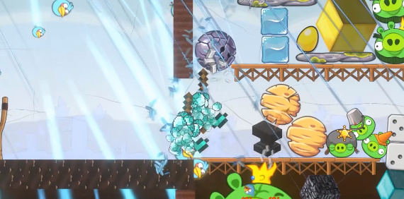 2、拖动小鸟来进行攻击,搭配各种元素来进行攻击,提供了多种难度带来更多的闯关选择。