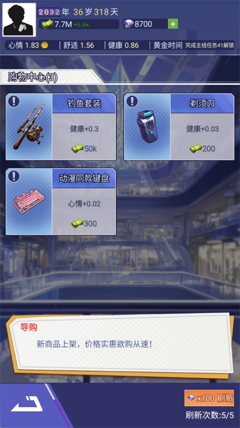 每次都会随机刷新三件物品,玩家可以根据自己的经济来进行购买,每次购买物品都会增加玩家的健康值。