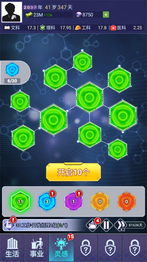 开启灵感可以获得工作经验卡、研究经验卡、情缘券等不同的道具卡。