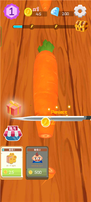 2、每次点击一次屏幕就可以完成一次水果切割,切割次数越多所获得的金币奖励也就更多