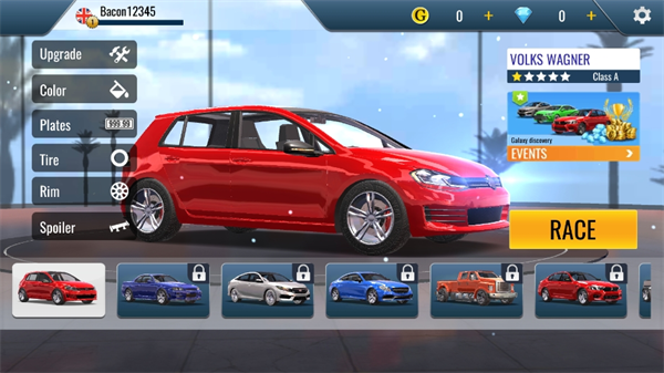 1、进入游戏可以通过左右滑动来换车,一个性能好的车是赢得游戏的关键。