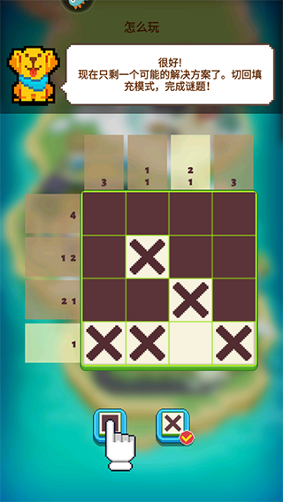8、很好,现在只剩一个可能的解决方案了,切回填充模式,完成谜题!