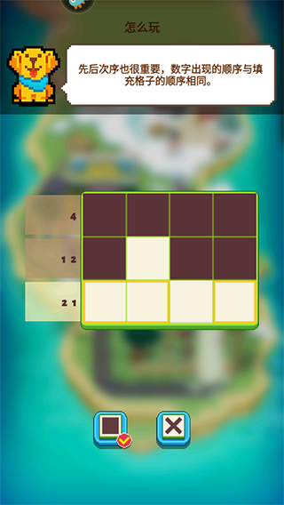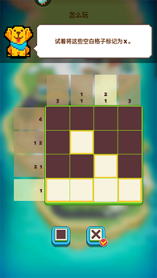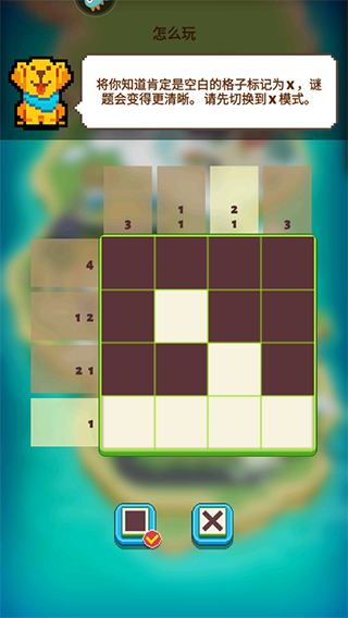 2、谜题通过填充格子完成,请先切换到填充模式。