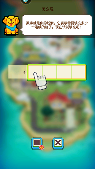 3、数字就是你的线索,它表示需要填充多少个连续的格子,现在试试填充吧!