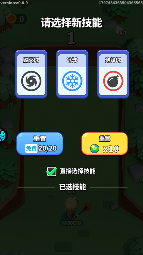 3、每通过一层后便能够选择一个技能,建议首先伤害高和能造成范围伤害的,如“毁灭球”和“炮弹球”
