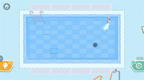 4、最后再将水塞放回原处,开水龙头将泳池放满即可过关